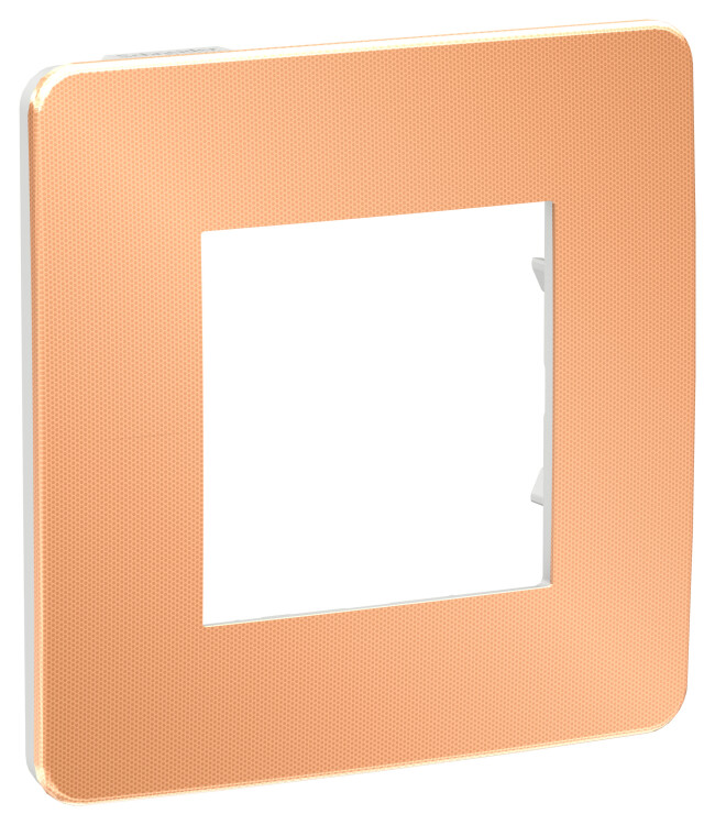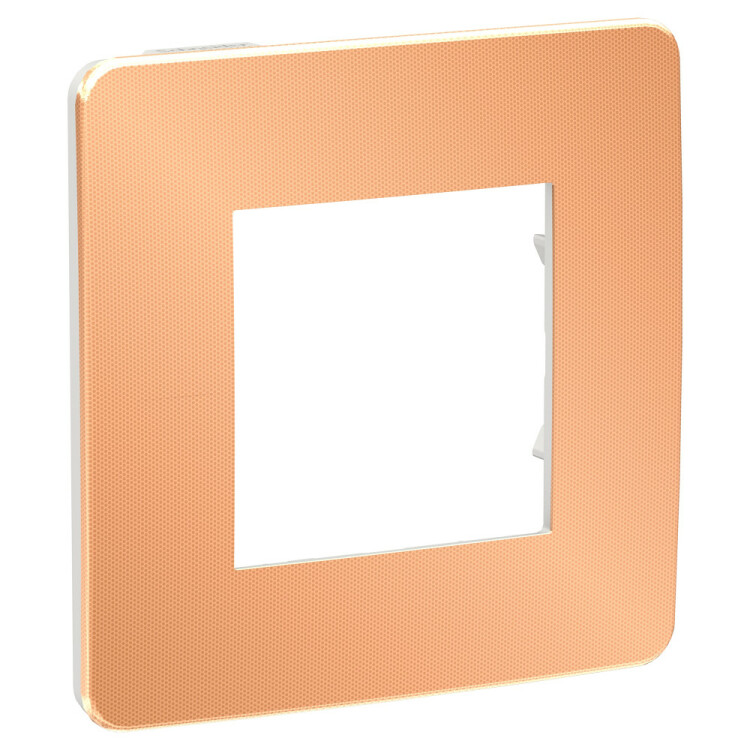 Рамка Schneider Electric UNICA STUDIO Metal (медь) одинарная с задней панелью цвета белый.