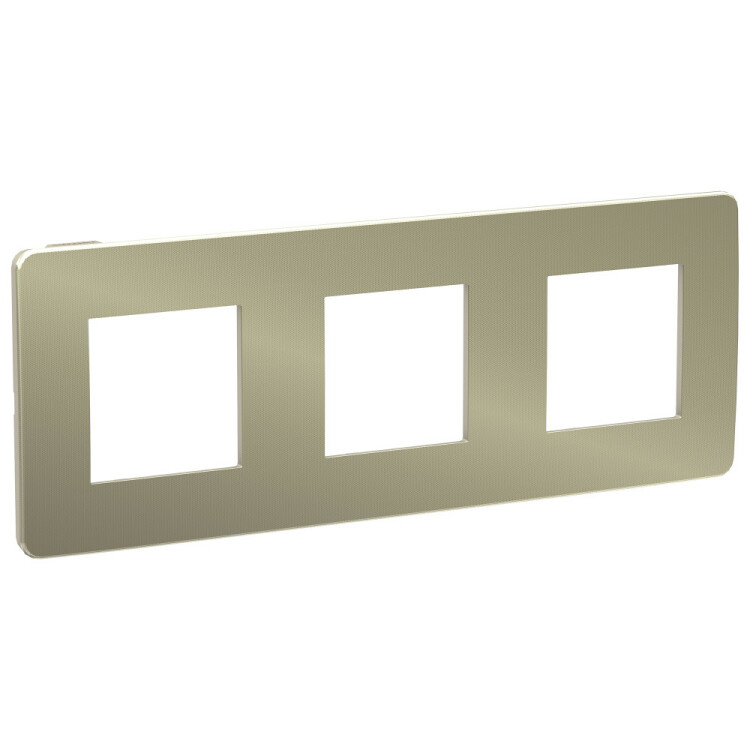 Рамка Schneider Electric UNICA STUDIO Metal (бронза) трёхместная с задней панелью цвета бежевый.