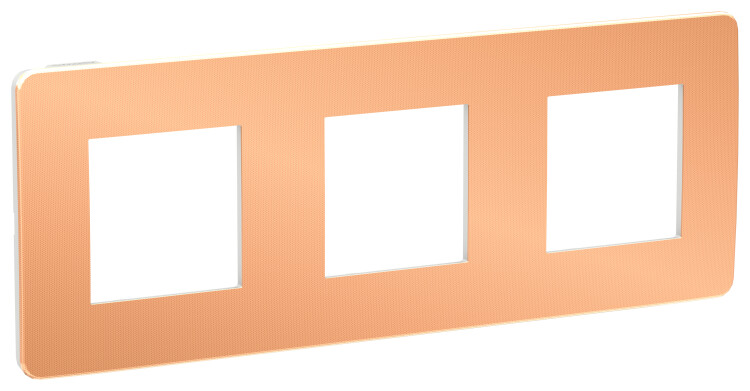 Рамка Schneider Electric UNICA STUDIO Metal (медь) трёхместная с задней панелью цвета белый.