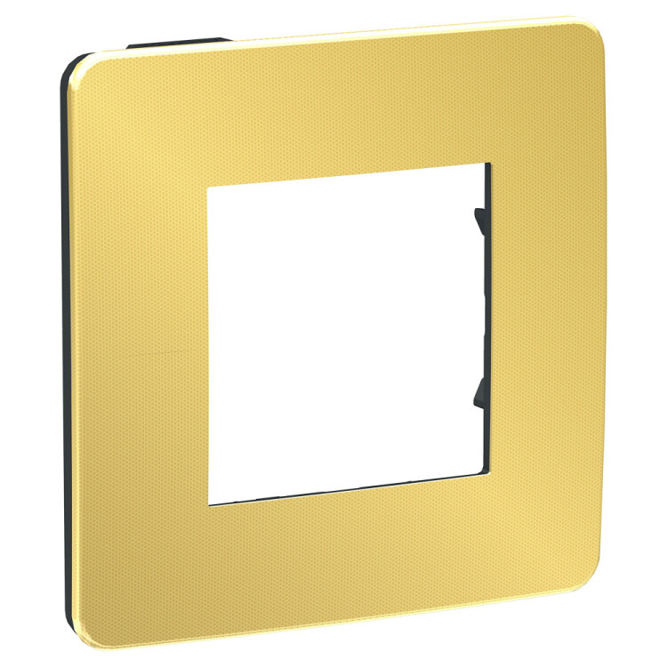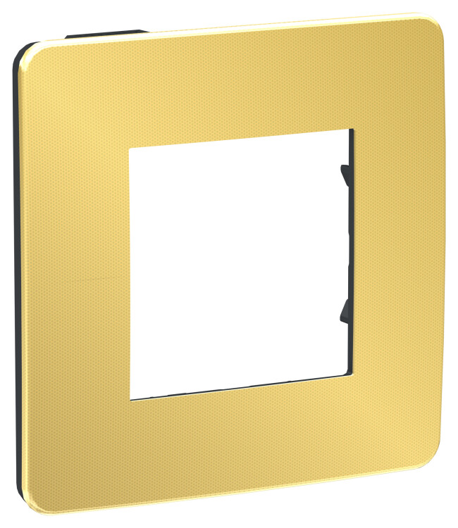 Рамка Schneider Electric UNICA STUDIO Metal (золото) одинарная с задней панелью цвета антрацит.