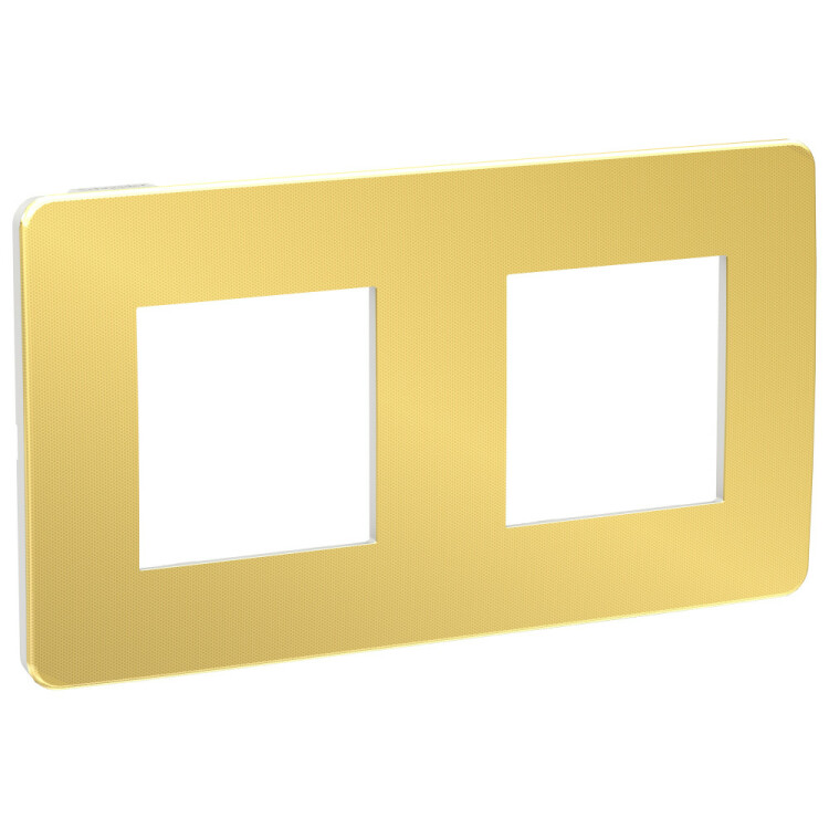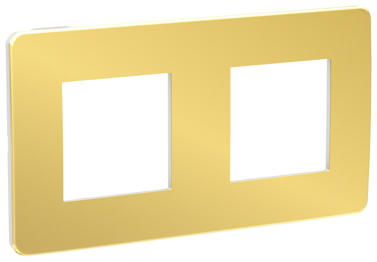 Рамка Schneider Electric UNICA STUDIO Metal (золото) двухместная с задней панелью цвета белый.