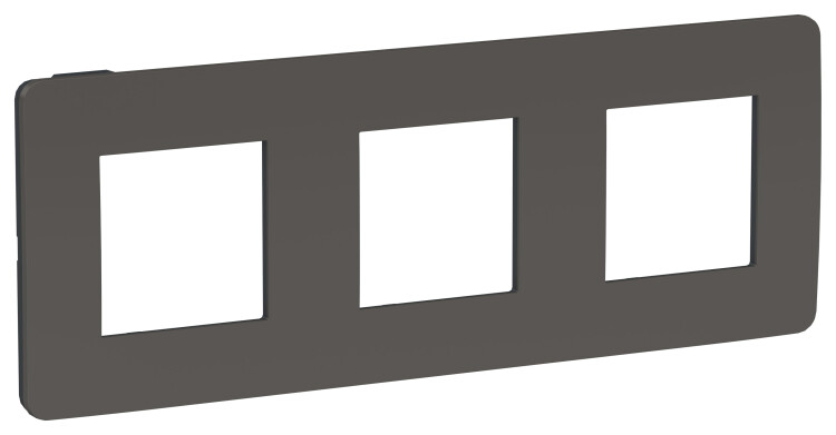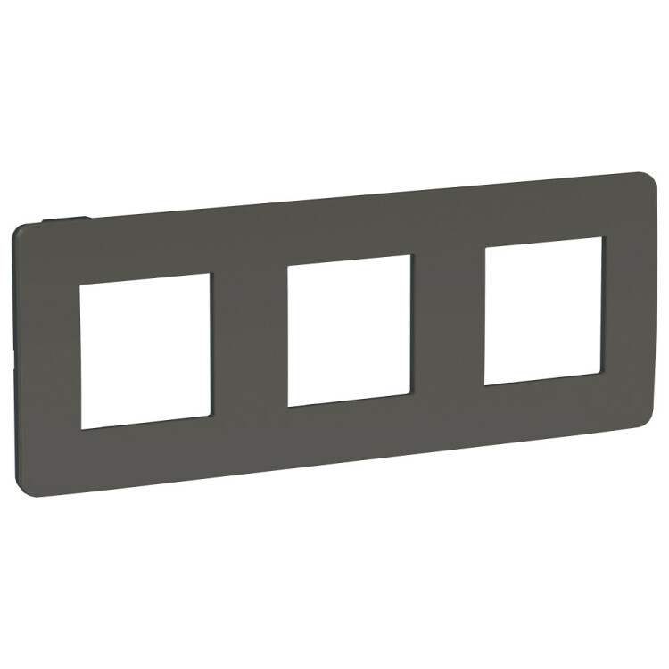 Рамка Schneider Electric UNICA STUDIO Color (дымчато-серый) трёхместная с задней панелью цвета антрацит.