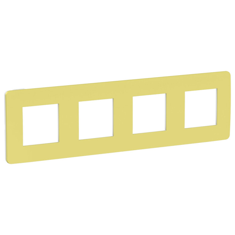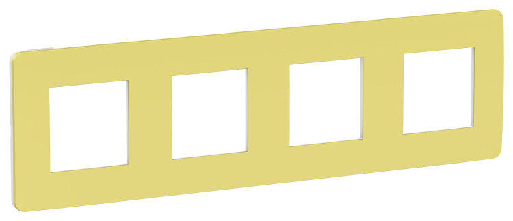 Рамка Schneider Electric UNICA STUDIO Color (зелёное яблоко) четырёхместная с задней панелью цвета белый.