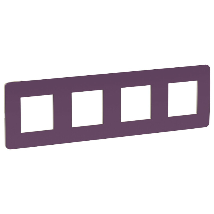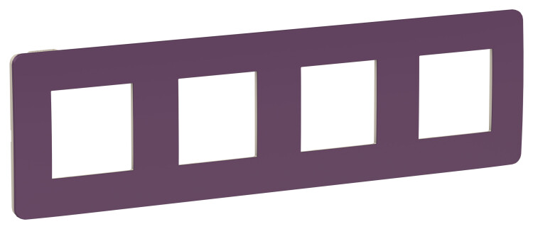 Рамка Schneider Electric UNICA STUDIO Color (лиловый) четырёхместная с задней панелью цвета бежевый.