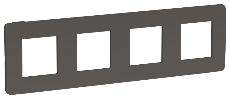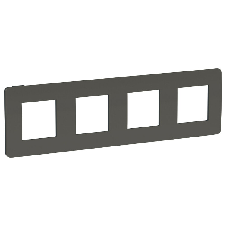 Рамка Schneider Electric UNICA STUDIO Color (дымчато-серый) четырёхместная с задней панелью цвета антрацит.