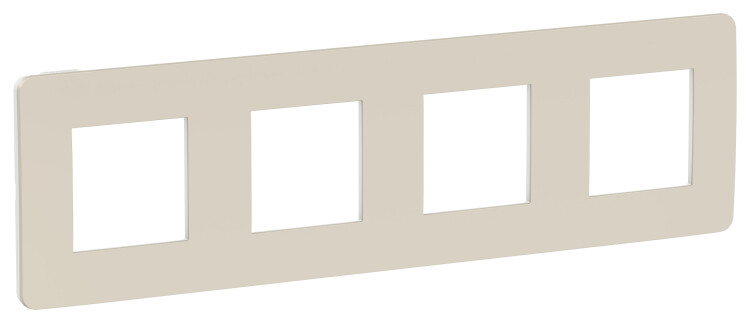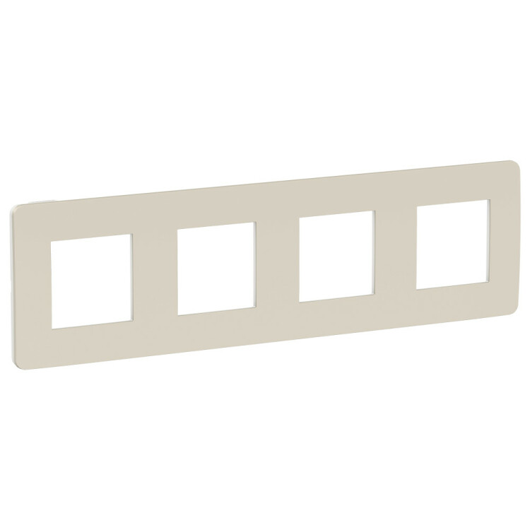 Рамка Schneider Electric UNICA STUDIO Color (шампань) четырёхместная с задней панелью цвета белый.