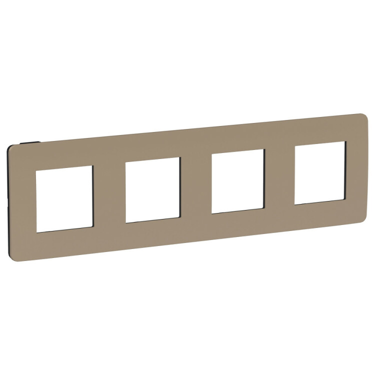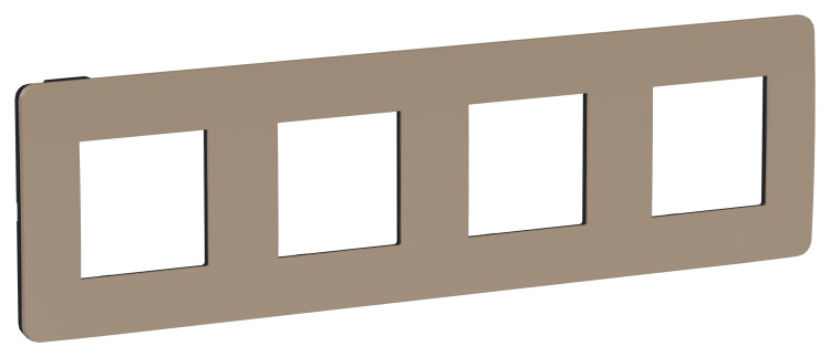 Рамка Schneider Electric UNICA STUDIO Color (песочный) четырёхместная с задней панелью цвета антрацит.