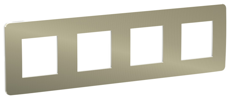 Рамка Schneider Electric UNICA STUDIO Metal (бронза) четырёхместная с задней панелью цвета белый.