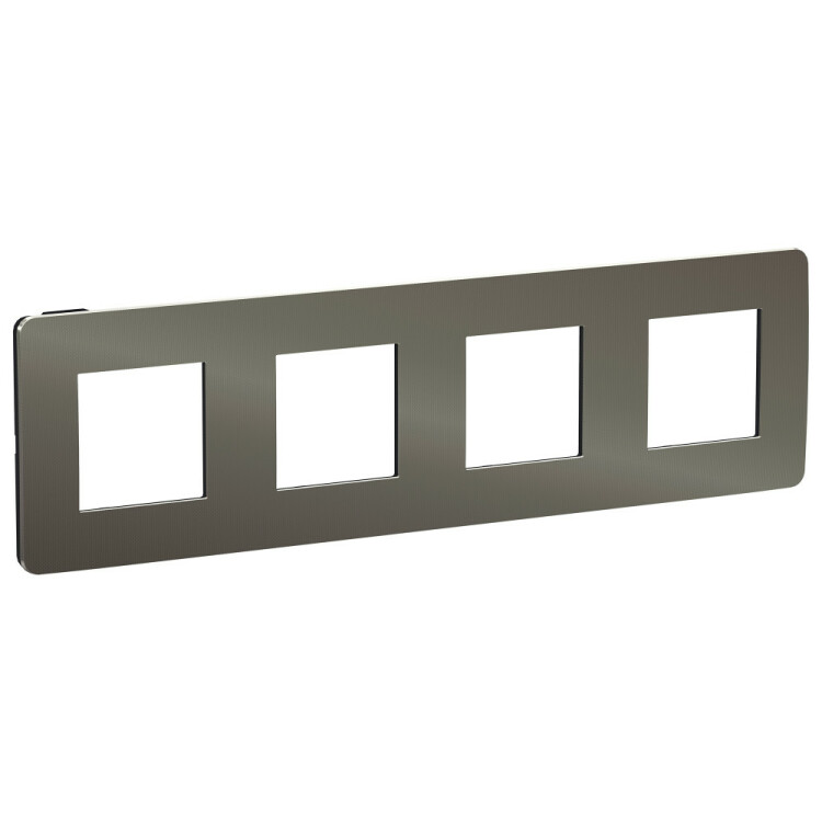 Рамка Schneider Electric UNICA STUDIO Metal (никель) четырёхместная с задней панелью цвета антрацит.