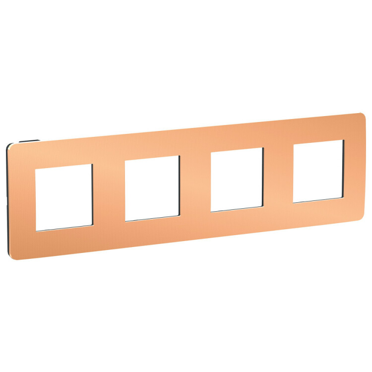 Рамка Schneider Electric UNICA STUDIO Metal (медь) четырёхместная с задней панелью цвета антрацит.