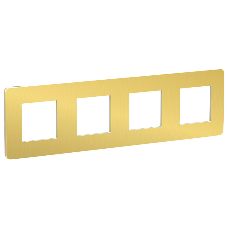 Рамка Schneider Electric UNICA STUDIO Metal (золото) четырёхместная с задней панелью цвета бежевый.