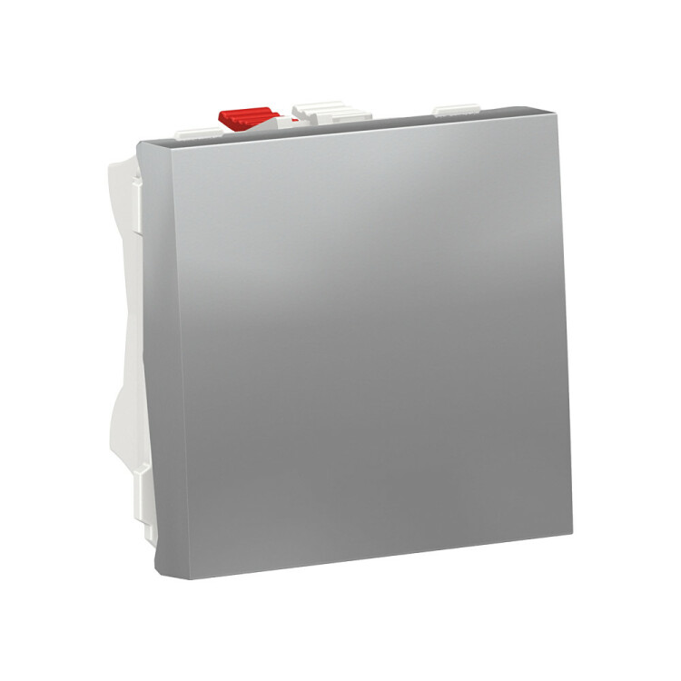 Выключатель одноклавишный Schneider Electric UNICA MODULAR (алюминий) двухмодульный без подсветки предназначен для сетей до 250 В на ток до 10 А.