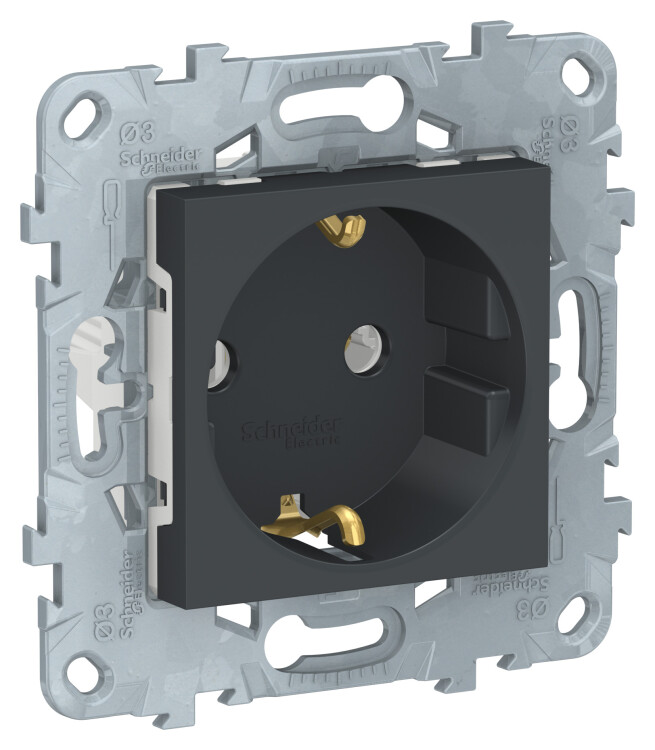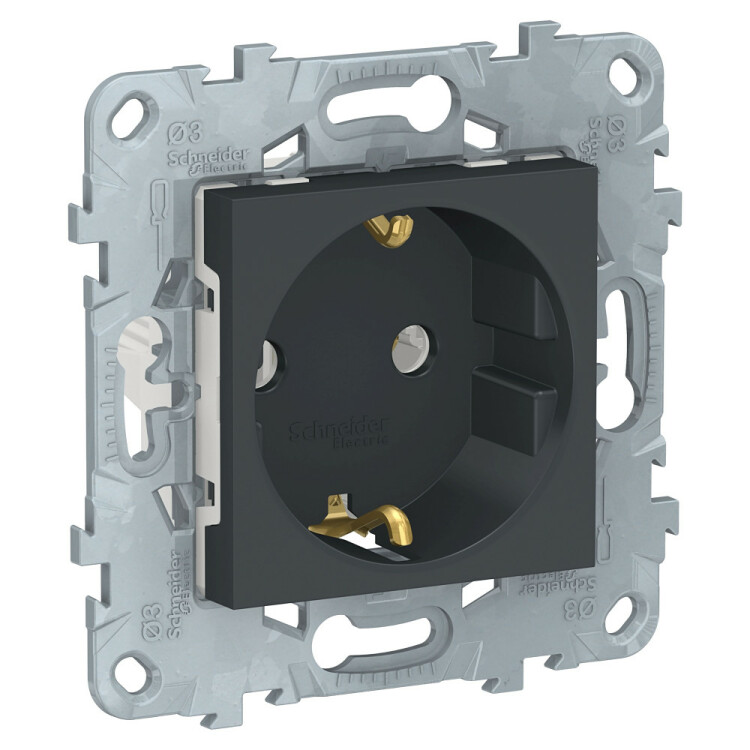 Розетка Schneider Electric UNICA NEW (антрацит) с заземлением, без шторок, с винтовыми зажимами предназначена для сетей до 250 В на ток до 16 А.