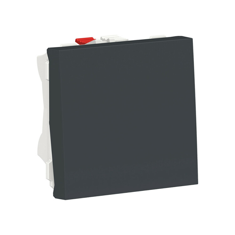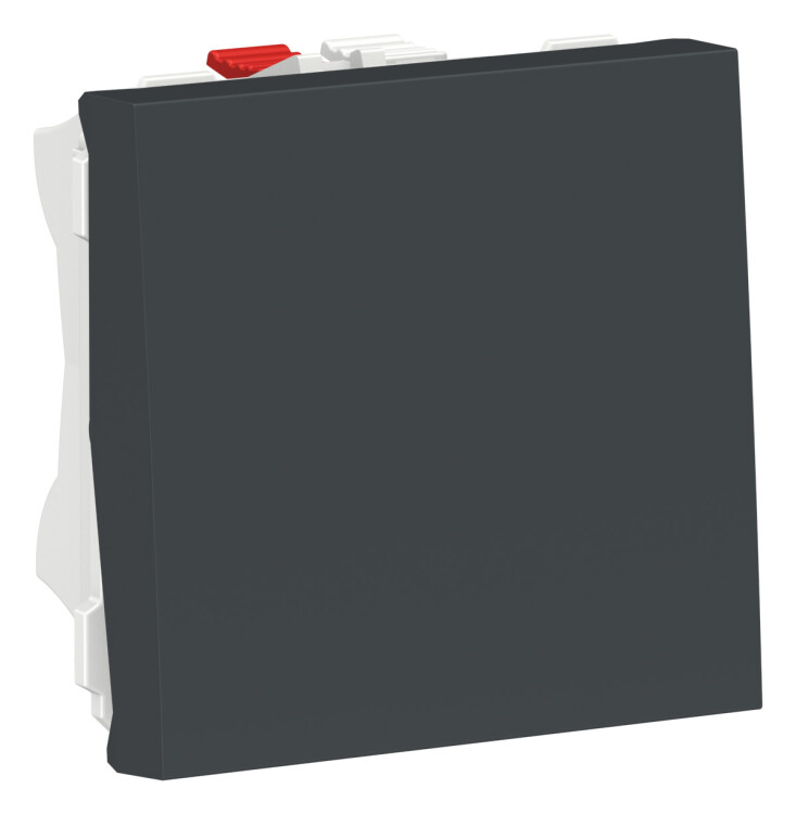 Выключатель одноклавишный Schneider Electric UNICA MODULAR (антрацит) двухмодульный кнопочный без подсветки предназначен для сетей до 250 В на ток до 10 А.