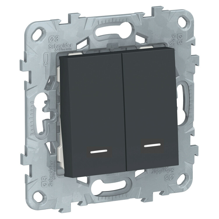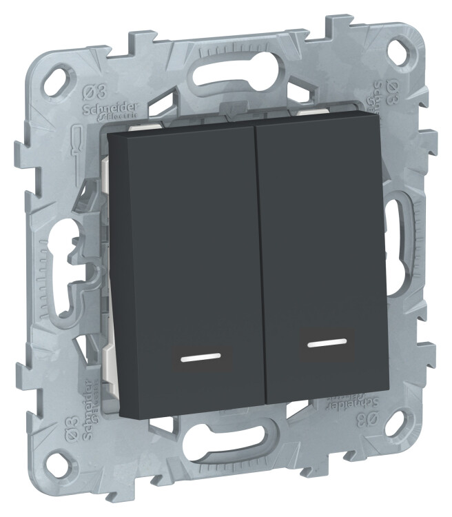 Выключатель двухклавишный Schneider Electric UNICA NEW (антрацит) с подсветкой предназначен для сетей до 250 В на ток до 10 А.