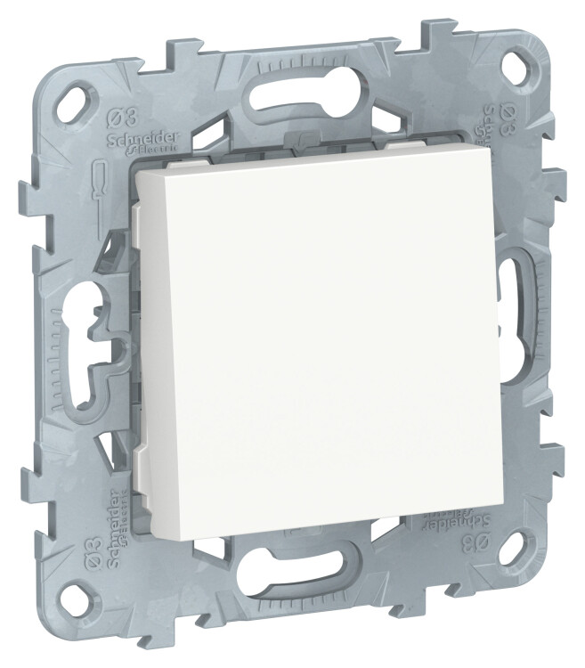 Выключатель одноклавишный Schneider Electric UNICA NEW (белый) без подсветки предназначен для сетей до 250 В на ток до 10 А.
