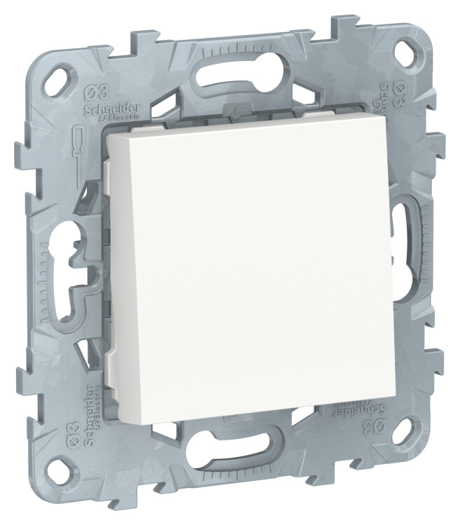 Переключатель одноклавишный Schneider Electric UNICA NEW (белый) без подсветки предназначен для сетей до 250 В на ток до 10 А.