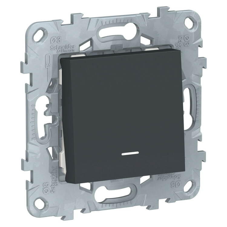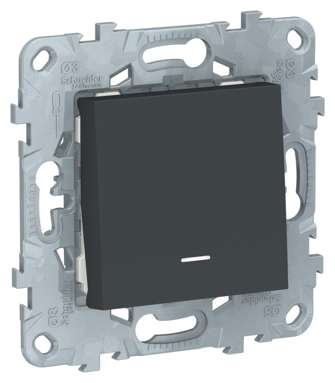 Переключатель одноклавишный Schneider Electric UNICA NEW (антрацит) с подсветкой предназначен для сетей до 250 В на ток до 10 А.
