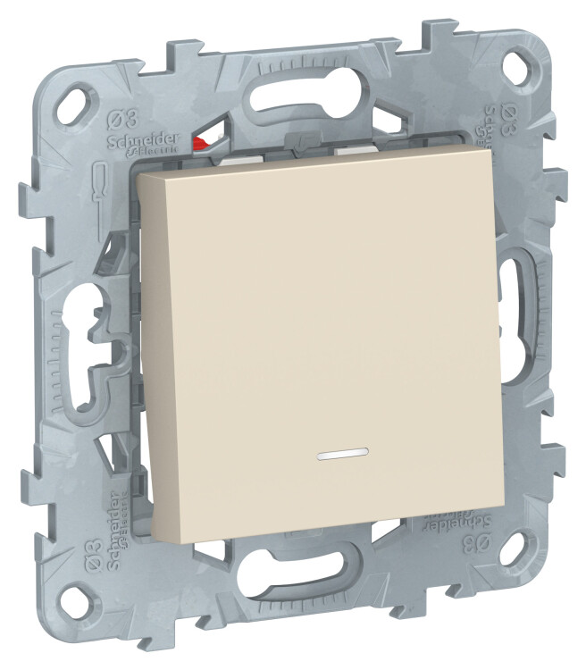 Переключатель одноклавишный Schneider Electric UNICA NEW (бежевый) перекрёстный с подсветкой предназначен для сетей до 250 В на ток до 10 А.