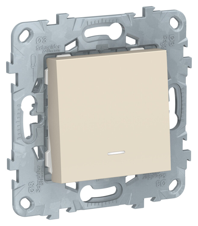Выключатель одноклавишный Schneider Electric UNICA NEW (бежевый) кнопочный с подсветкой предназначен для сетей до 250 В на ток до 10 А.
