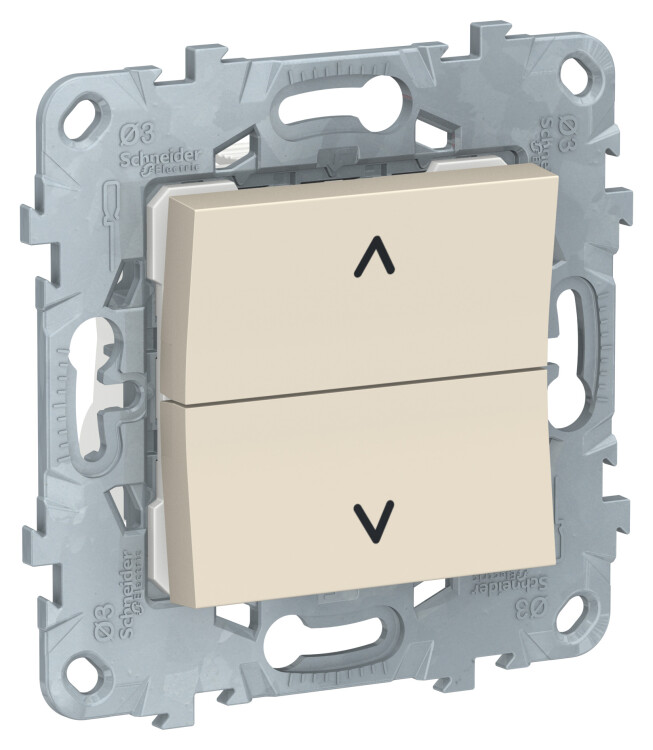 Выключатель двухклавишный для жалюзи Schneider Electric UNICA NEW (бежевый) без подсветки и без фиксации предназначен для сетей до 250 В на ток до 10 А.