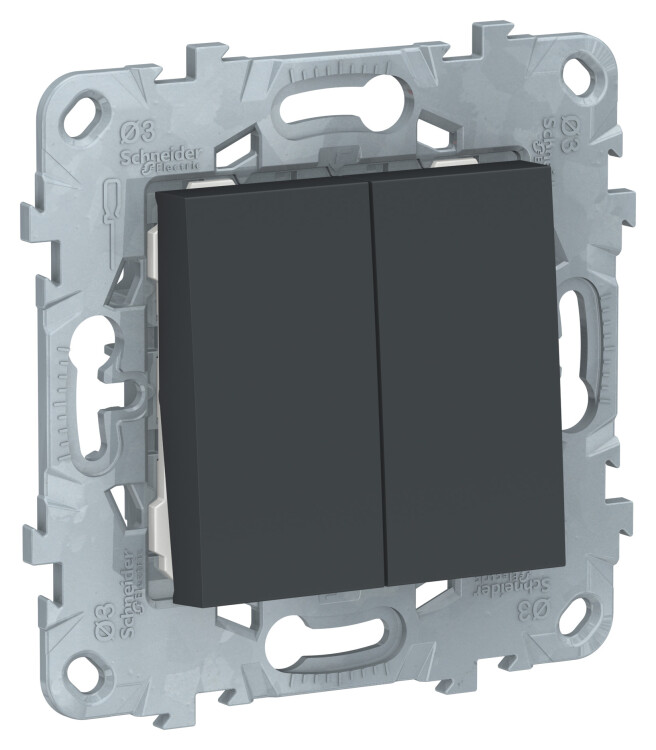Переключатель двухклавишный Schneider Electric UNICA NEW (антрацит) без подсветки предназначен для сетей до 250 В на ток до 10 А.
