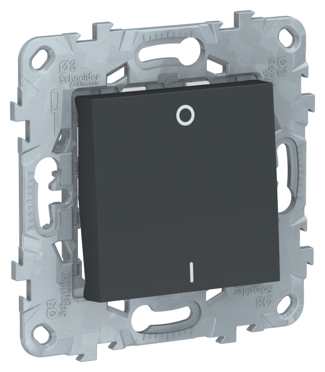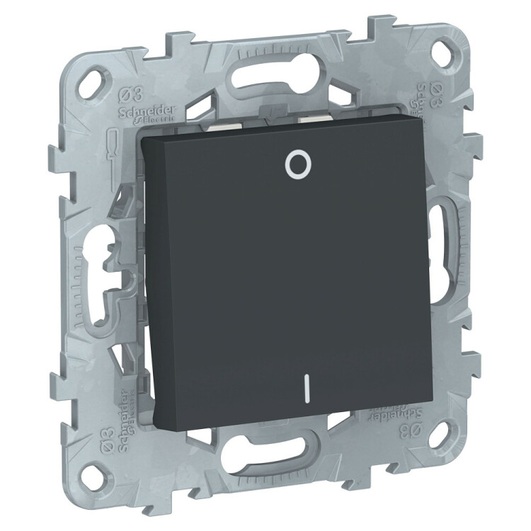 Выключатель одноклавишный Schneider Electric UNICA NEW (антрацит) двухполюсный предназначен для сетей до 250 В на ток до 16 А.