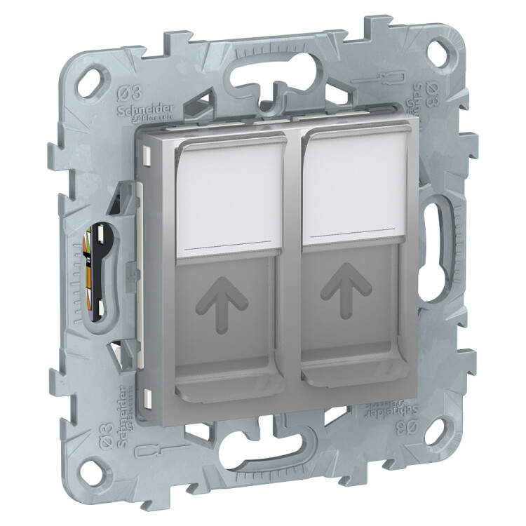 Розетка RJ45 категория 6 UTP Schneider Electric UNICA NEW (алюминий) двойная компьютерная с полем для надписи.