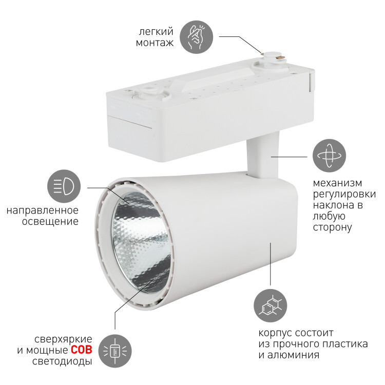 Трековый светильник TR4 - 30 WH позволит расставить световые акценты в любом помещении. Он имеет поворотный плафон, благодаря чему можно менять направление светового потока в любую сторону. Срок службы светодиодного светильника составляет 30000 часов. Он отлично подойдет для создания зонированного пространства. Направленный свет позволит выделить конкретные зоны в помещении, создать особую атмосферу. Трековые светильники легко монтируются, подстраиваются под дизайнерские особенности помещения, позволяют при необходимости полностью менять восприятие помещения. Трековые светильники компании Эра выдающийся акцент в любом пространстве.