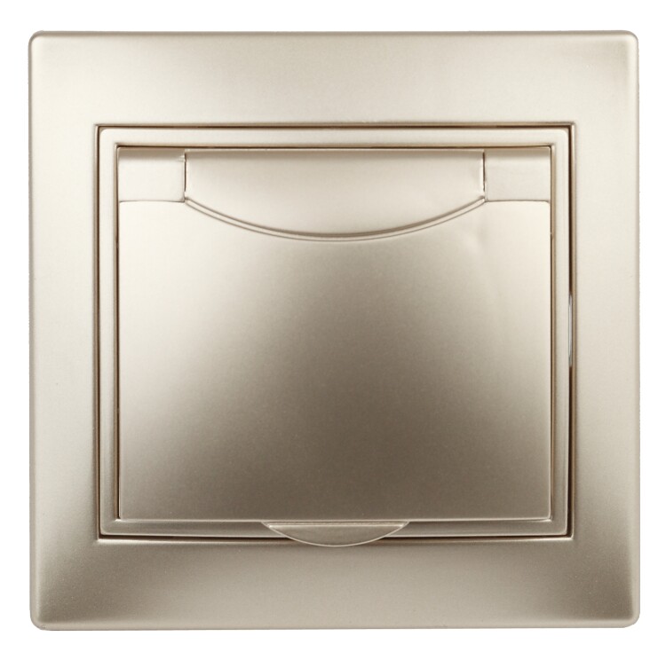 Розетка с крышкой со шторками серии Intro Plano скрытой установки цвет шампань 1-203-04. Номинальные характеристики 16А 250В. Розетка выполнена из керамики, укомплектована одноместной рамкой, оснащена винтовыми клеммами. Клеммы с двумя отверстиями позволяют соединять соседние розетки шлейфом. Установка в подрозетник производится как на монтажные лапки, так и на винты. Для установки 2-х и более устройств в несколько подрозетников в ряд дополнительно используются многоместные рамки: 2-х постовая - 1-502-хх, 3-х постовая 1-503-хх, 4-х постовая - 1-504-хх (где хх - цветовой код: 01 - белый, 02 - слоновая кость, 03 - алюминий, 04 - шампань, 05 - антрацит, 10 - венге, 11 - сосна).