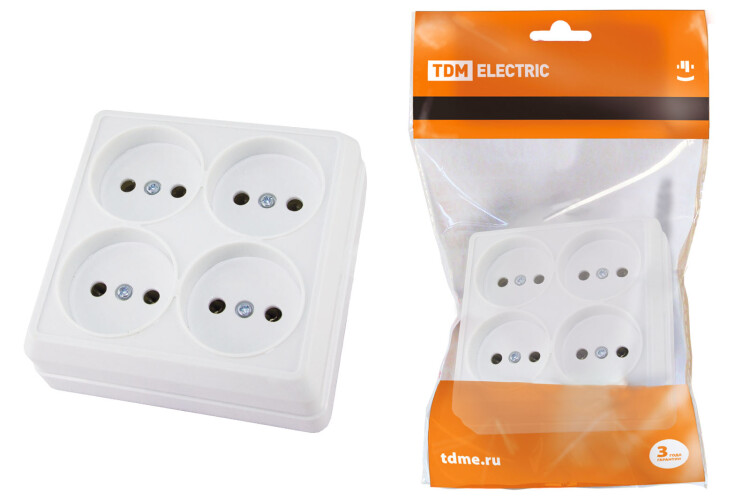Розетка четырехместная 2П открытой установки IP20 10A белая "Ладога" TDM (кр.6шт)