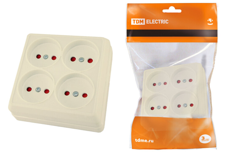 Розетка четырехместная 2П открытой установки IP20 10А с защитными шторками сл. кость "Ладога" TDM (кр.6шт)
