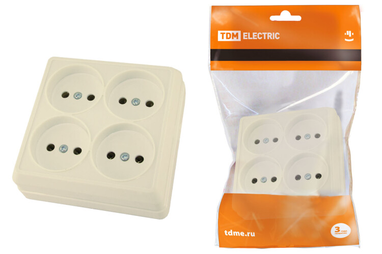 Розетка четырехместная 2П открытой установки IP20 10А сл. кость "Ладога" TDM (кр.6шт)