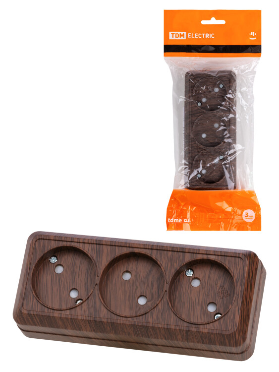 Розетка 3-х местная горизонтальная 2П открытой установки IP20 10A с з/ш бук "Ладога" TDM (кр.6шт)