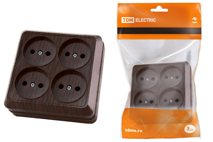 Розетка четырехместная 2П открытой установки IP20 10A бук "Ладога" TDM (кр.6шт)