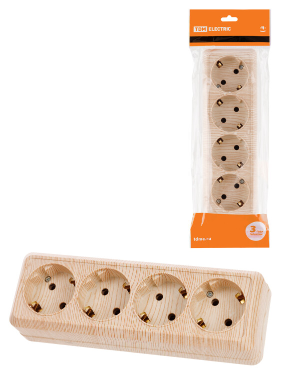 Розетка 4-х местная горизонтальная 2П+3 открытой установки IP20 16A сосна "Ладога" TDM (кр.6шт)