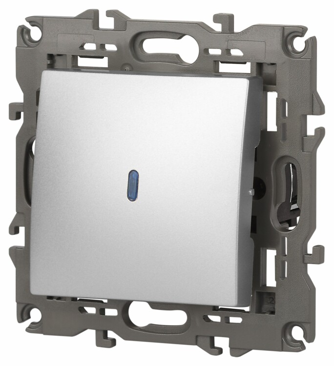 Выключатель 1-клавишный подсветка Эра Elegance а люминий 14-1102-03. Оснащён автоматическими клеммами для надёжной фиксации жил кабеля в механизме. Рамки приобретаются отдельно.