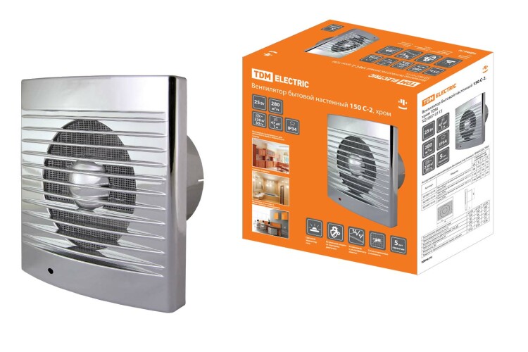 Вентилятор бытовой настенный 150 С-2, хром TDM (кр.1шт)