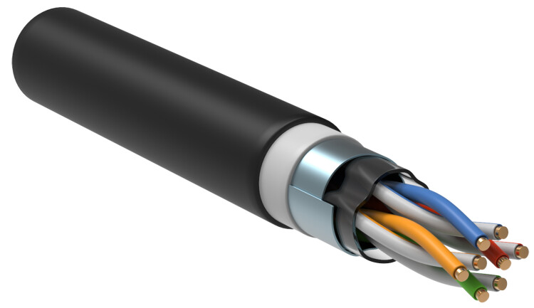 Кабель ITK категории 5е для внешней прокладки 4х парный U/UTP в двух оболочках: ПВХ и LDPE, цвет черный. Приме няется для построения структурированных кабельных систем, локальных вычислительных сетей, для общей коммуникационной инфраструктуры между зданиями, для магистральных подсистем и для организации уличной «последней мили».