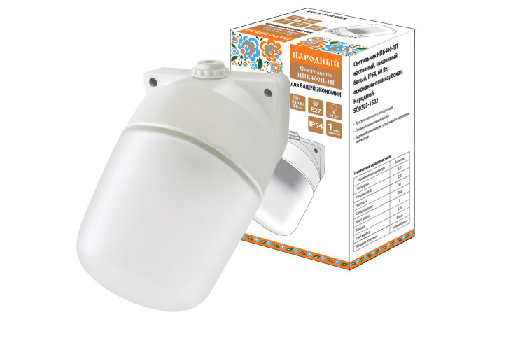 Светильник НПБ400-1П настенный, наклонный белый, IP54, 60 Вт, основание-поликарбонат, Народный (кр.1шт)