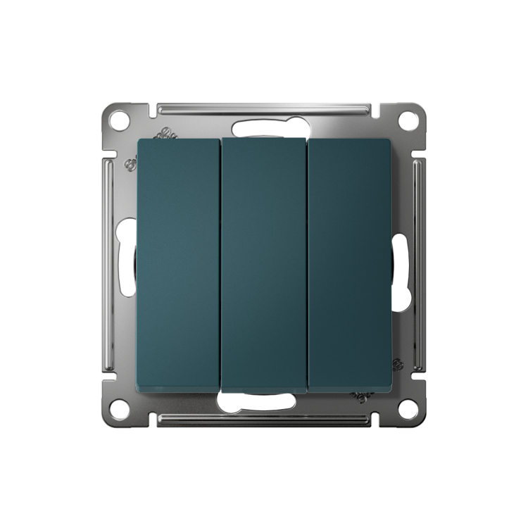 Механизм Systeme Electric (ранее Schneider Electric) серии AtlasDesign в цвете изумруд выключателя 3-клавишного подходит дл я сетей 250 В, на ток 10 А. Трёхклавишный выключатель позволяет управлять тремя источниками света из одной точки. Лицевые детали из качественного ABS-пластика, устойчивого к царапинам и УФ-излучению. Усиленные прямые монтажные лапки для лучшей фиксации механизма в монтажной коробке.