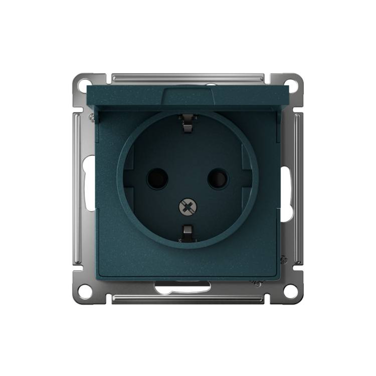 Механизм Systeme Electric (ранее Schneider Electric) серии AtlasDesign в цвете изумруд розетки одинарной с заземлением, што рками и крышкой подходит для сетей 250 В, на ток 16 А. Заземляющий контакт обеспечивает дополнительную защиту от удара электрическим током. При наличии заземления электрический потенциал уходит в землю, защищая человека. Лицевые детали из качественного ABS-пластика, устойчивого к царапинам и УФ-излучению. Усиленные прямые монтажные лапки для лучшей фиксации механизма в монтажной коробке.