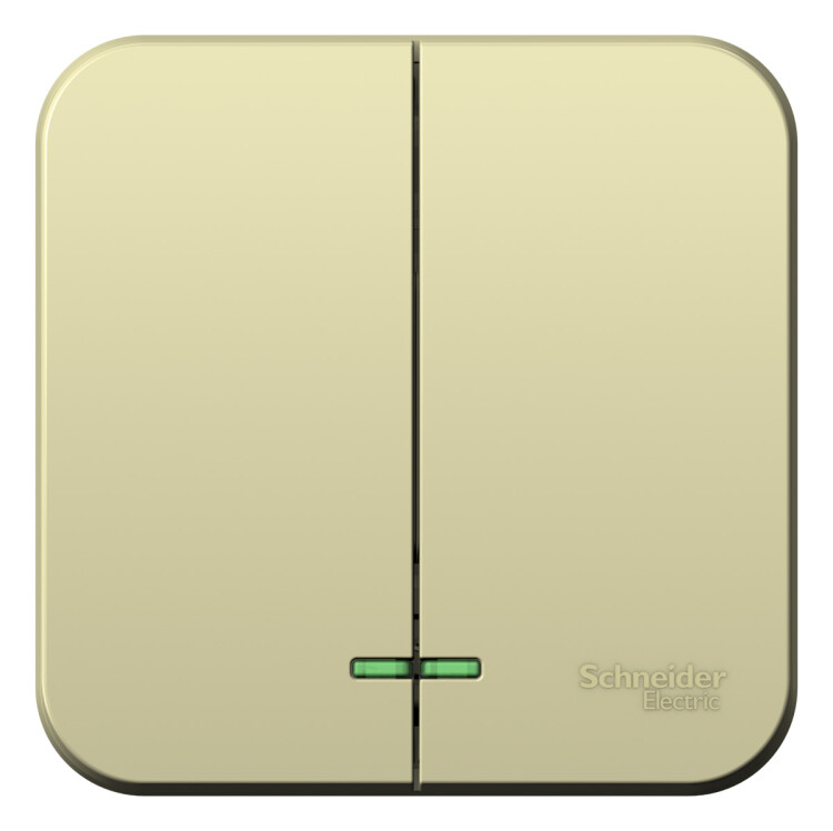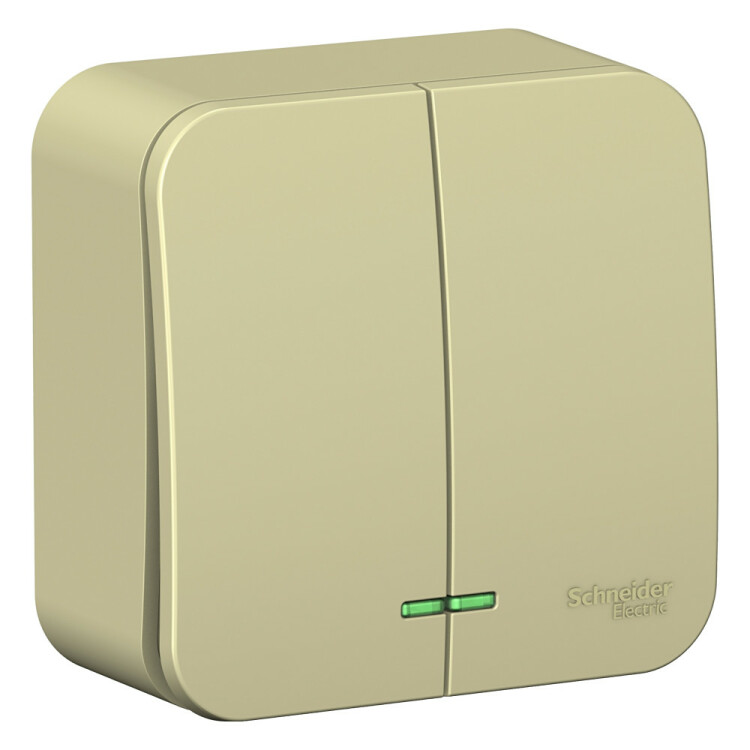 Выключатель двухклавишный Systeme Electric (ранее Schneider Electric) BLANCA (открытой установки, цвет бежевый) с изолирующей пластиковой пластиной и подсветкой предназначен для сетей до 250 В, на ток до 10 А. Благодаря светодиодной подсветке зеленого цвета изделие легко найти в темноте. С его помощью можно управлять двумя источниками света с одной точки. Увеличенная площадь контактной поверхности гарантирует надежность и качество соединения, исключая потери. Корпус изделия выполнен из ABS-пластика.