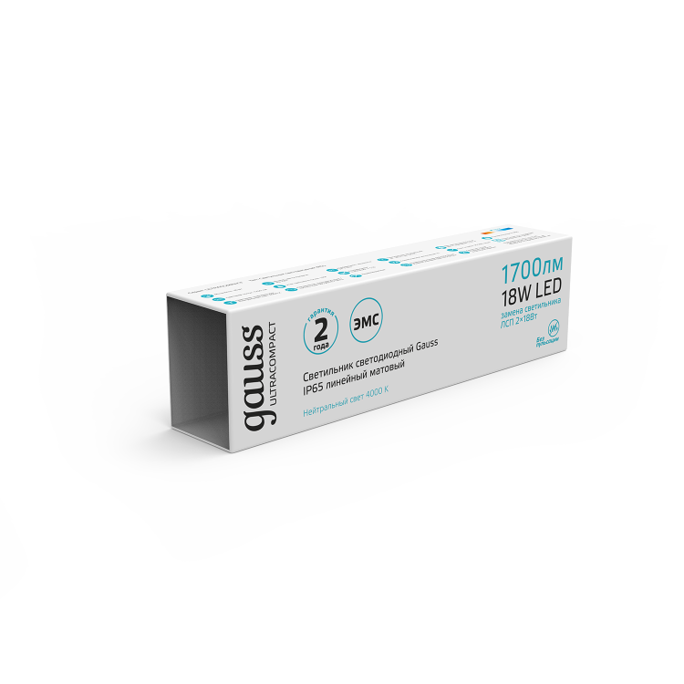 Светильник светодиодный Gauss Ultracompact IP65 18w - это профессиональный светильник с высокой пылевлагозащитой и широким диапазоном рабочих температур от -40 до +45°C, который может быть установлен в труднодоступных местах благодаря своей компактной форме, а возможность простого герметичного соединения в линию до 20 светильников может быть использована с выгодой дл я освещения длинных узких помещений типа ангаров и подземных или надземных переходов. В единичном использовании эта модель подойдет и для личных фермерских хозяйств, гаражей, теплиц, подвалов.