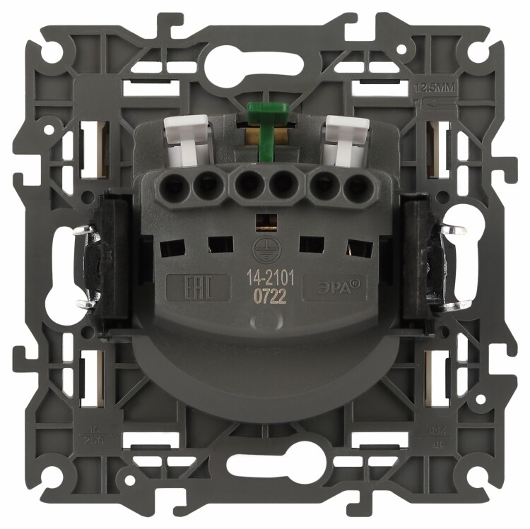 Розетка с заземлением Эра Elegance слоновая кость 14-2101-02. Оснащёна автоматическими клеммами для надёжной фиксации жил кабеля в механизме. Рамки приобретаются отдельно. Рамки Эра Elegance ПЛАСТИК: 1 пост 14-5001-хх, 2 поста 14-5002-хх, 3 поста 14-5003-хх, 4 поста 14-5004-хх, 5 постов 14-5005-хх; СТЕКЛО: 1 пост 14-5101-хх, 2 поста 14-5102-хх, 3 поста 14-5103-хх, 4 поста 14-5104-хх; МЕТАЛЛ: 1 пост 14-5201-хх, 2 поста 14-5202-хх, 3 поста 14-5203-хх, 4 поста 14-5204-хх; ДЕРЕВО: 1 пост 14-5301-хх, 2 поста 14-5302-хх, 3 поста 14-5303-хх, 4 поста 14-5304-хх (хх - код цвета: 00-прозрачный, 01-белый, белёный дуб, 02-слоновая кость, 03-алюминий, 04-шампань, 05-чёрный, чёрное дерево, 07-ясень, 09-дуб, 10-венге, 11-клён, 14-медь, 21-жёлтый, 22-оранжевый, 23-красный, 25-бордо, 26-лайм, 27-зелёный, 28-голубой, 29-синий, 30-розовый, 31-мокко, 32-серый, 41-сталь, 42-титан).