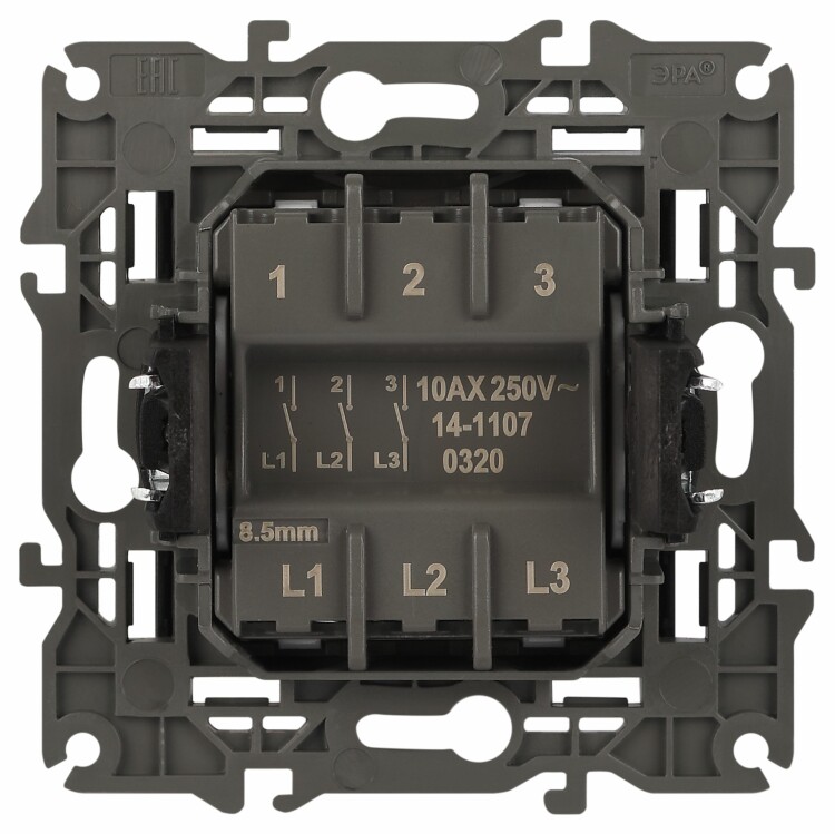 14-1107-05 ЭРА Выключатель тройной, 10АХ-250В, IP20, Эра Elegance, антрацит (10/100/1600) (кр. 1шт)