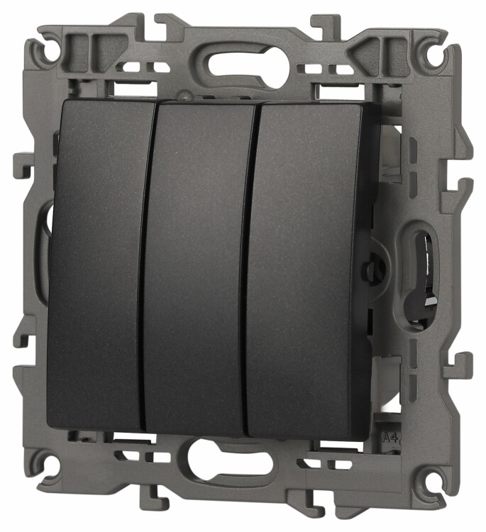 Выключатель 3-клавишный Эра Elegance антрацит 14-1107-05. Рамки приобретаются отдельно.