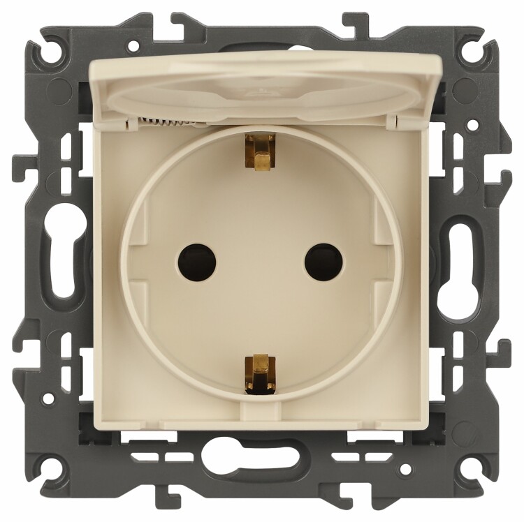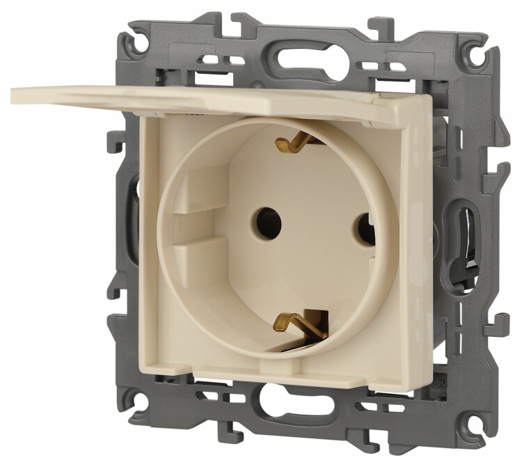 Розетка с заземлением шторки крышка Эра Elegance слон.кость 14-2103-02. Оснащёна автоматическими клеммами для надёжной фиксации жил кабеля в механизме. Рамки приобретаются отдельно. Рамки Эра Elegance ПЛАСТИК: 1 пост 14-5001-хх, 2 поста 14-5002-хх, 3 поста 14-5003-хх, 4 поста 14-5004-хх, 5 постов 14-5005-хх; СТЕКЛО: 1 пост 14-5101-хх, 2 поста 14-5102-хх, 3 поста 14-5103-хх, 4 поста 14-5104-хх; МЕТАЛЛ: 1 пост 14-5201-хх, 2 поста 14-5202-хх, 3 поста 14-5203-хх, 4 поста 14-5204-хх; ДЕРЕВО: 1 пост 14-5301-хх, 2 поста 14-5302-хх, 3 поста 14-5303-хх, 4 поста 14-5304-хх (хх - код цвета: 00-прозрачный, 01-белый, белёный дуб, 02-слоновая кость, 03-алюминий, 04-шампань, 05-чёрный, чёрное дерево, 07-ясень, 09-дуб, 10-венге, 11-клён, 14-медь, 21-жёлтый, 22-оранжевый, 23-красный, 25-бордо, 26-лайм, 27-зелёный, 28-голубой, 29-синий, 30-розовый, 31-мокко, 32-серый, 41-сталь, 42-титан).