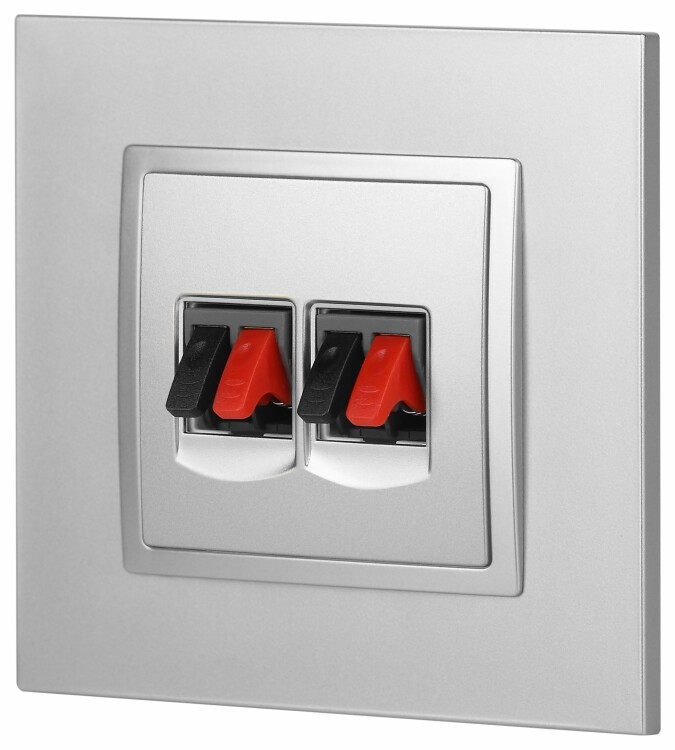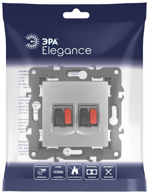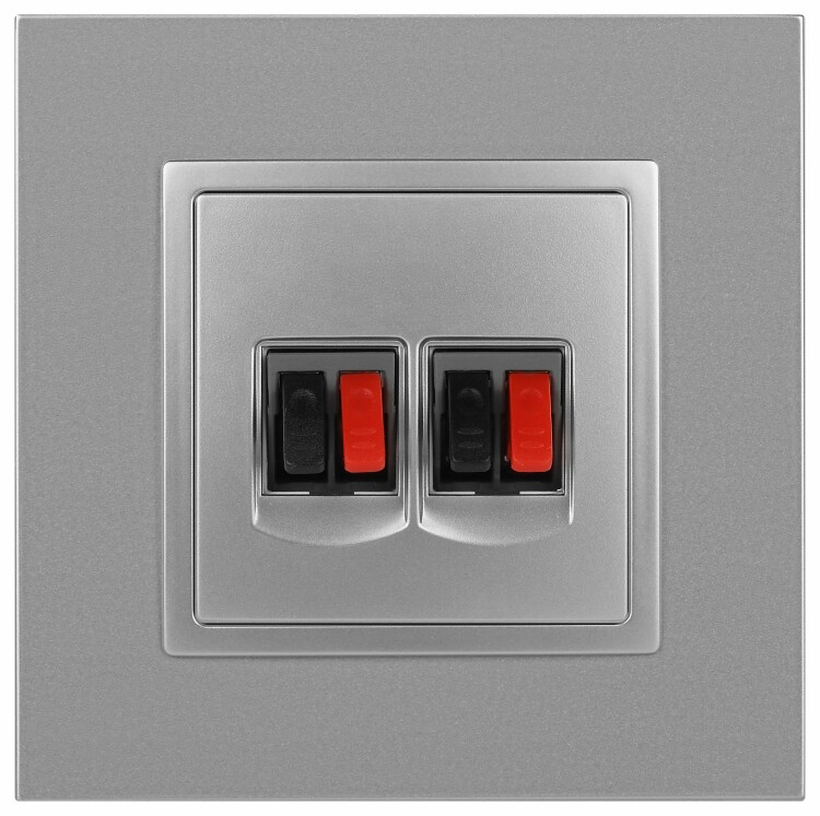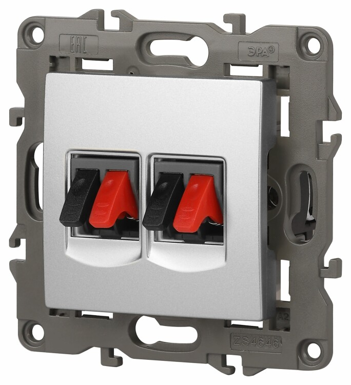 Розетка двойная аудио стерео серии Эра Elegance цвет алюминий 14-3112-03. Рамки приобретаются отдельно. Рамки Эра Elegance ПЛАСТИК: 1 пост 14-5001-хх, 2 поста 14-5002-хх, 3 поста 14-5003-хх, 4 поста 14-5004-хх, 5 постов 14-5005-хх; СТЕКЛО: 1 пост 14-5101-хх, 2 поста 14-5102-хх, 3 поста 14-5103-хх, 4 поста 14-5104-хх; МЕТАЛЛ: 1 пост 14-5201-хх, 2 поста 14-5202-хх, 3 поста 14-5203-хх, 4 поста 14-5204-хх; ДЕРЕВО: 1 пост 14-5301-хх, 2 поста 14-5302-хх, 3 поста 14-5303-хх, 4 поста 14-5304-хх (хх - код цвета: 00-прозрачный, 01-белый, белёный дуб, 02-слоновая кость, 03-алюминий, 04-шампань, 05-чёрный, чёрное дерево, 07-ясень, 09-дуб, 10-венге, 11-клён, 14-медь, 21-жёлтый, 22-оранжевый, 23-красный, 25-бордо, 26-лайм, 27-зелёный, 28-голубой, 29-синий, 30-розовый, 31-мокко, 32-серый, 41-сталь, 42-титан).
