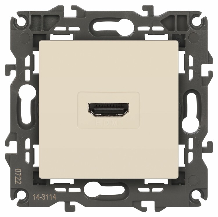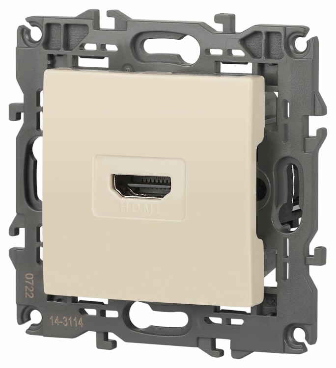 Розетка HDMI серии Эра Elegance цвет слоновая кость 14-3114-02. Рамки приобретаются отдельно. Рамки Эра Elegance ПЛАСТИК: 1 пост 14-5001-хх, 2 поста 14-5002-хх, 3 поста 14-5003-хх, 4 поста 14-5004-хх, 5 постов 14-5005-хх; СТЕКЛО: 1 пост 14-5101-хх, 2 поста 14-5102-хх, 3 поста 14-5103-хх, 4 поста 14-5104-хх; МЕТАЛЛ: 1 пост 14-5201-хх, 2 поста 14-5202-хх, 3 поста 14-5203-хх, 4 поста 14-5204-хх; ДЕРЕВО: 1 пост 14-5301-хх, 2 поста 14-5302-хх, 3 поста 14-5303-хх, 4 поста 14-5304-хх (хх - код цвета: 00-прозрачный, 01-белый, белёный дуб, 02-слоновая кость, 03-алюминий, 04-шампань, 05-чёрный, чёрное дерево, 07-ясень, 09-дуб, 10-венге, 11-клён, 14-медь, 21-жёлтый, 22-оранжевый, 23-красный, 25-бордо, 26-лайм, 27-зелёный, 28-голубой, 29-синий, 30-розовый, 31-мокко, 32-серый, 41-сталь, 42-титан).